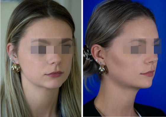 Die seitlichen Wangen wurden mit etwa 2 ml konturiert, die vorderen Wangen in einer Sitzung davor mit etwa 0,4 ml.